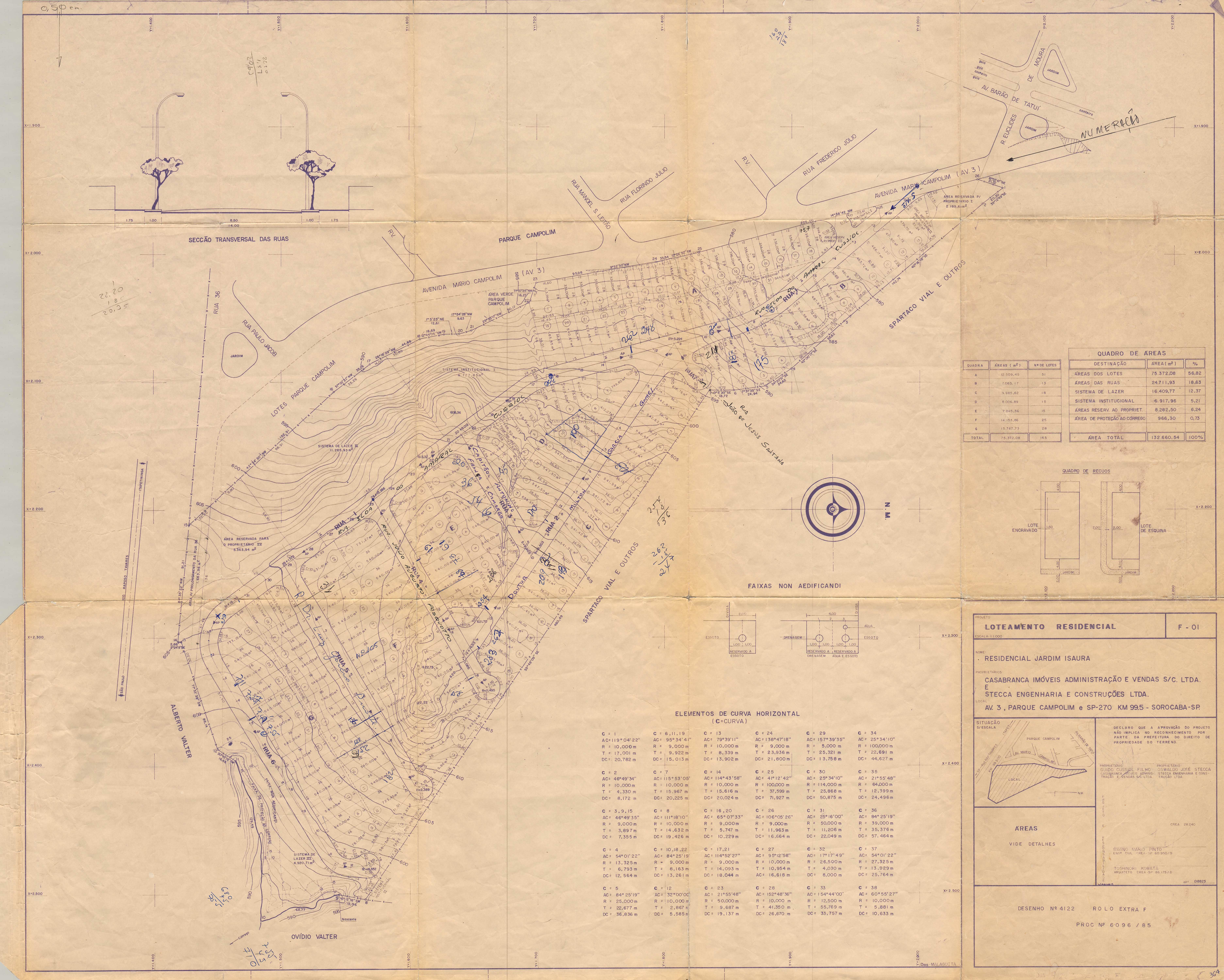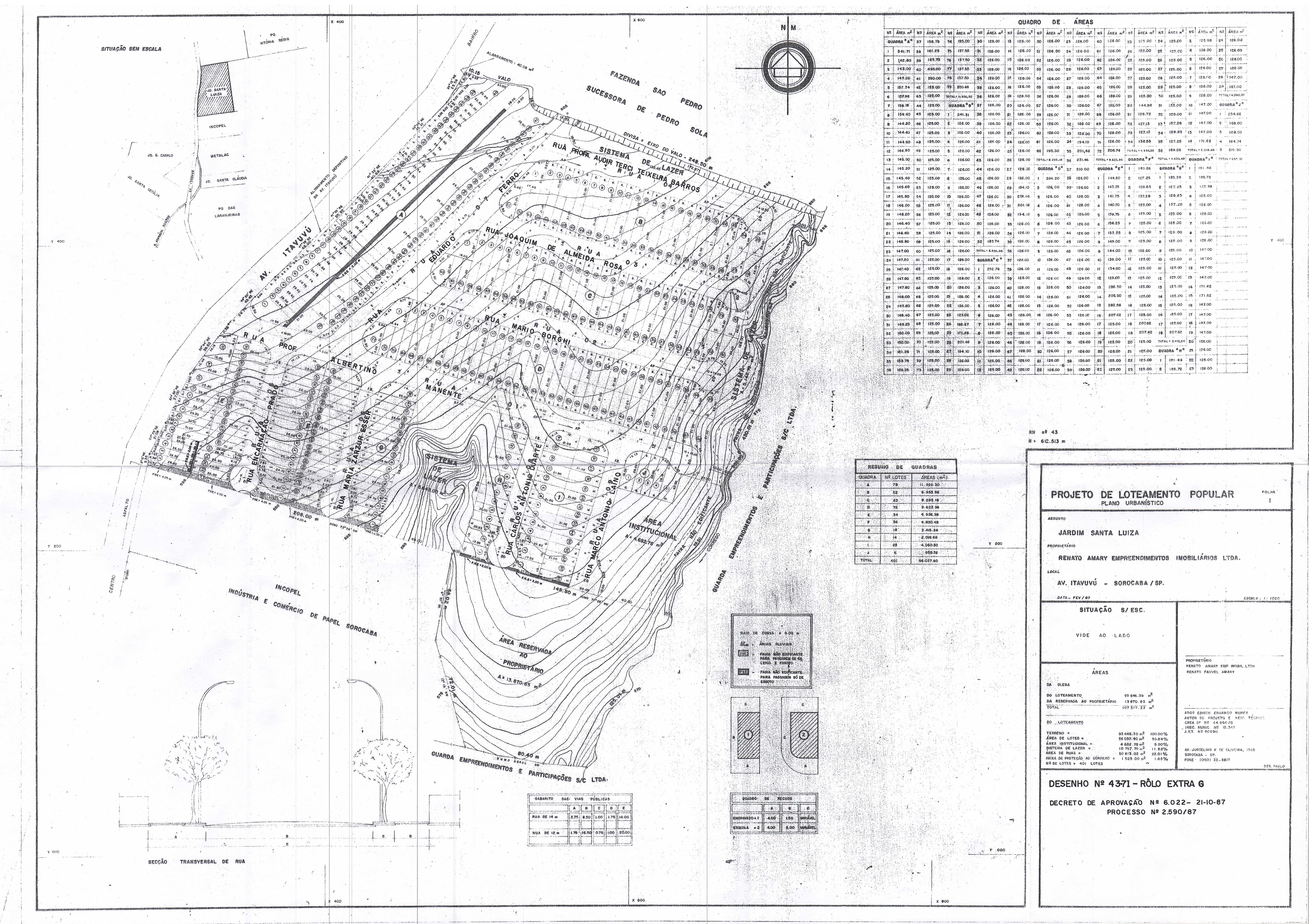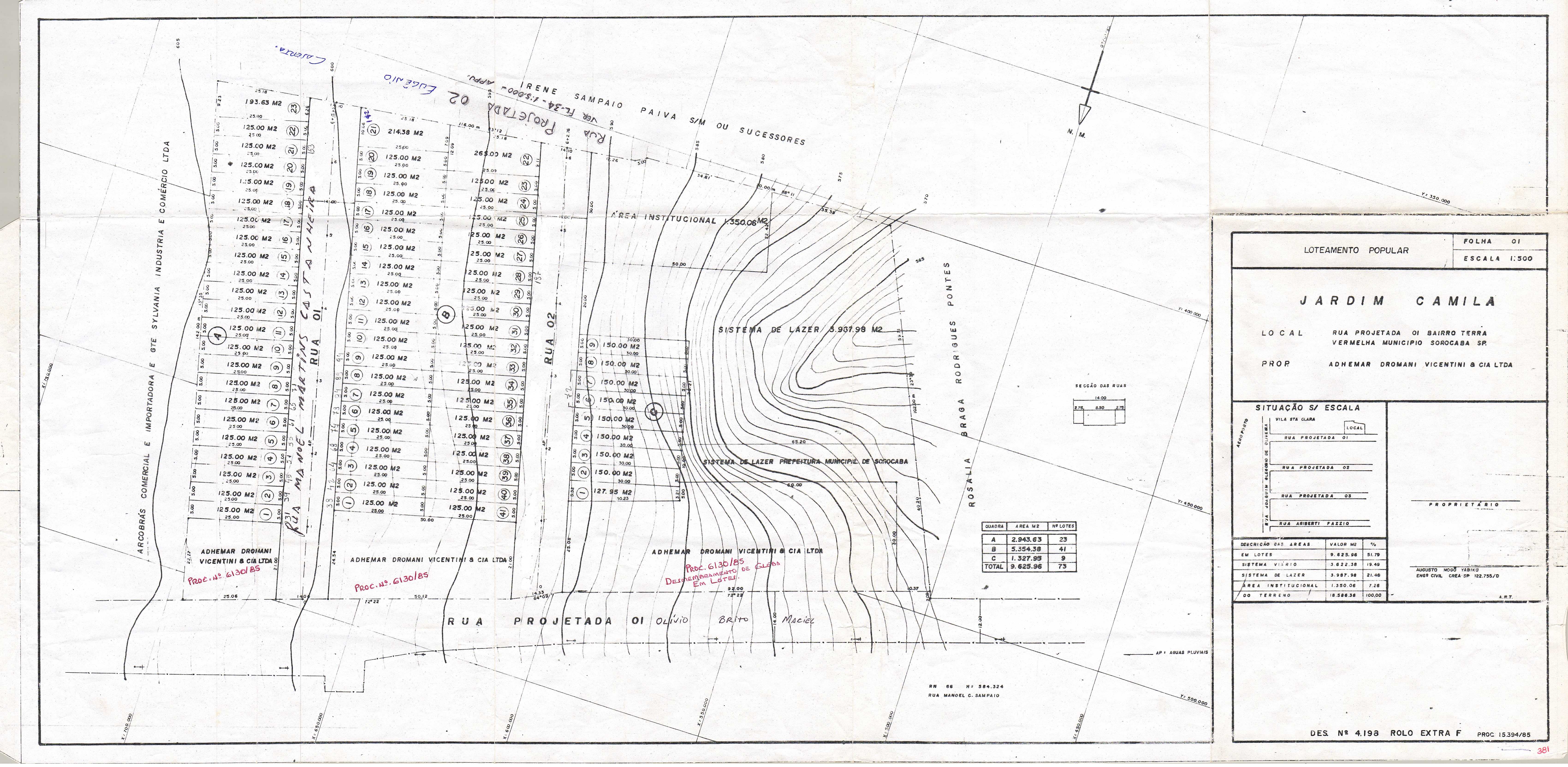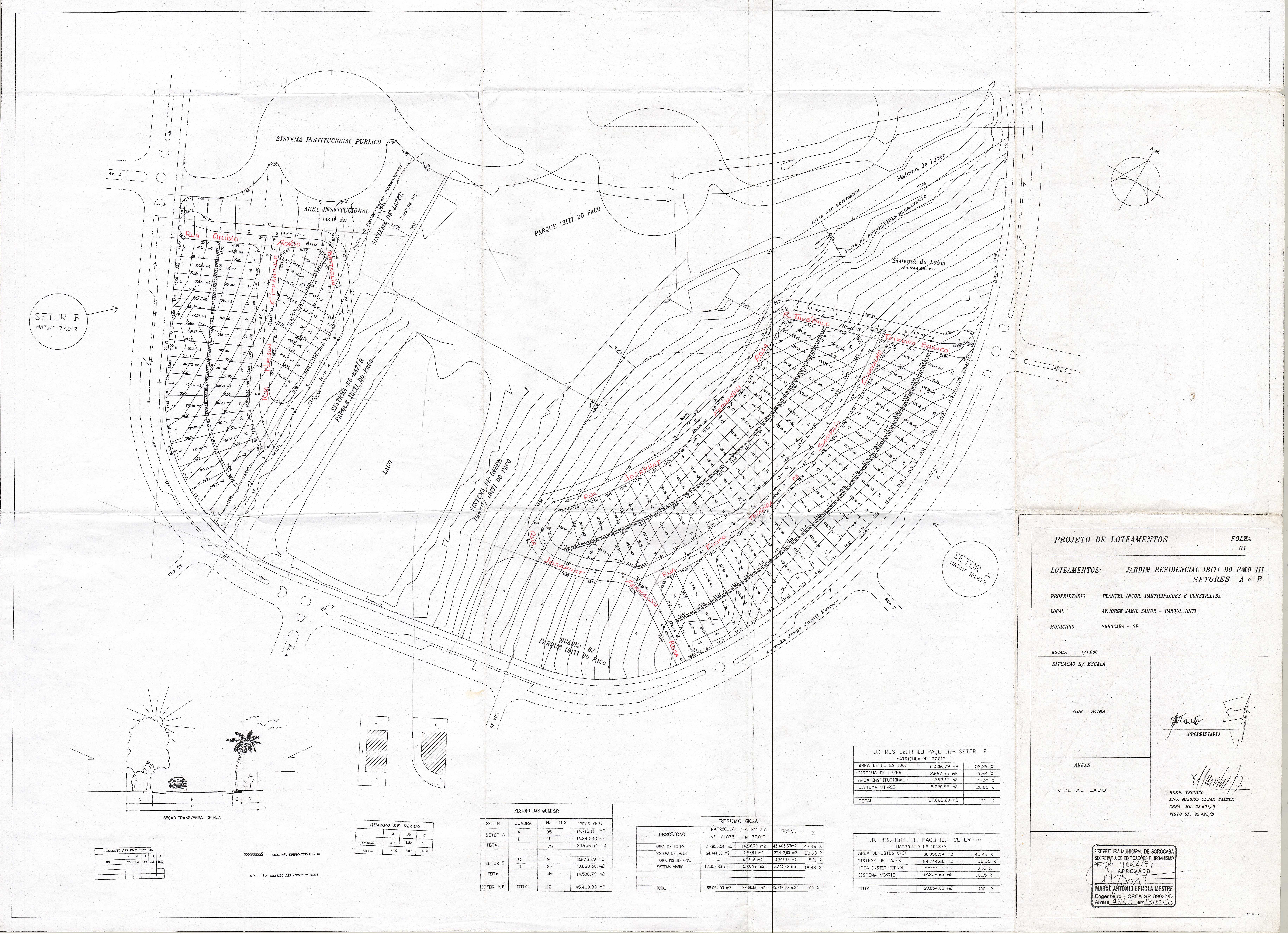 Veja abaixo o quadro de loteamentos e o mapa das áreas públicas de Sorocaba.