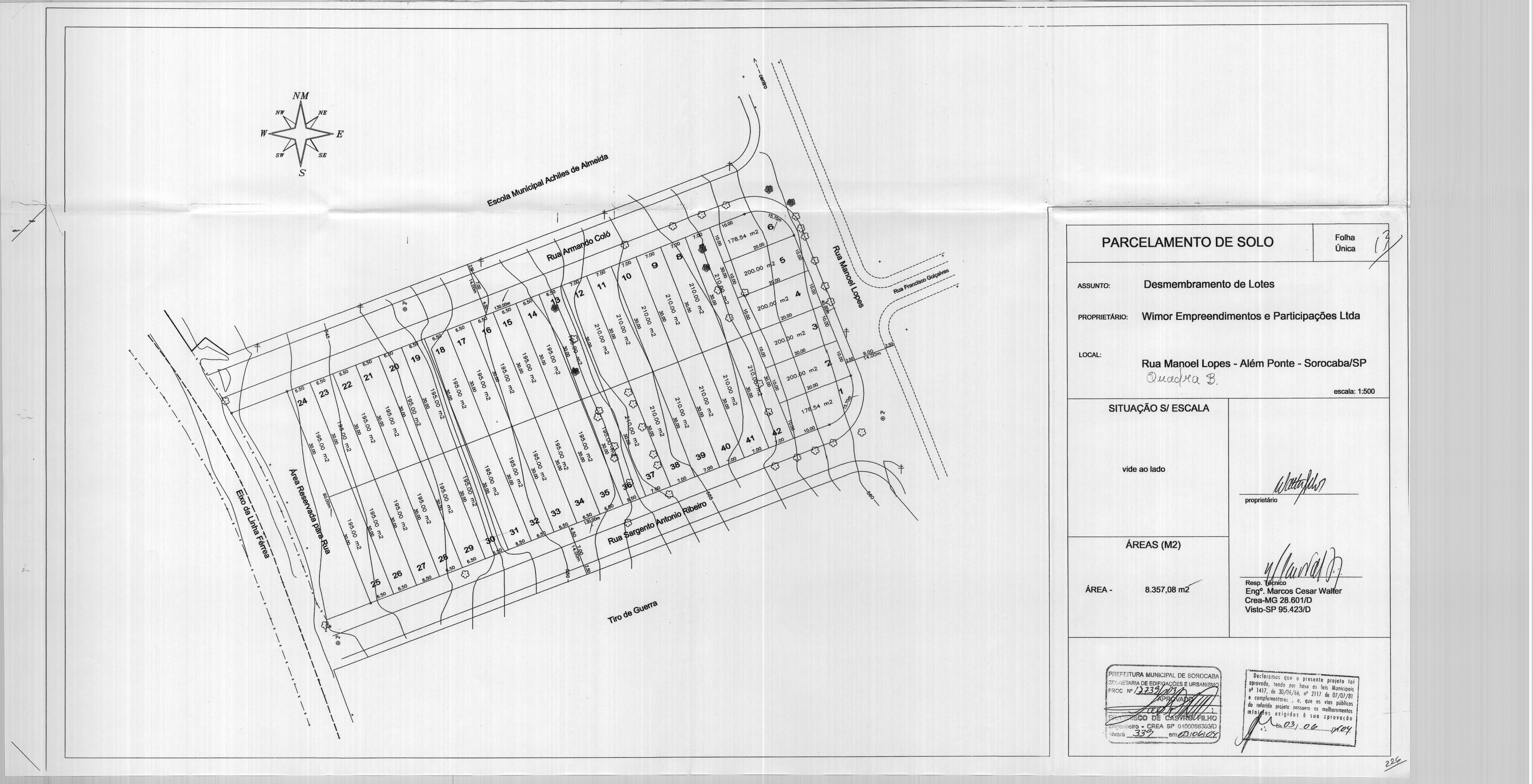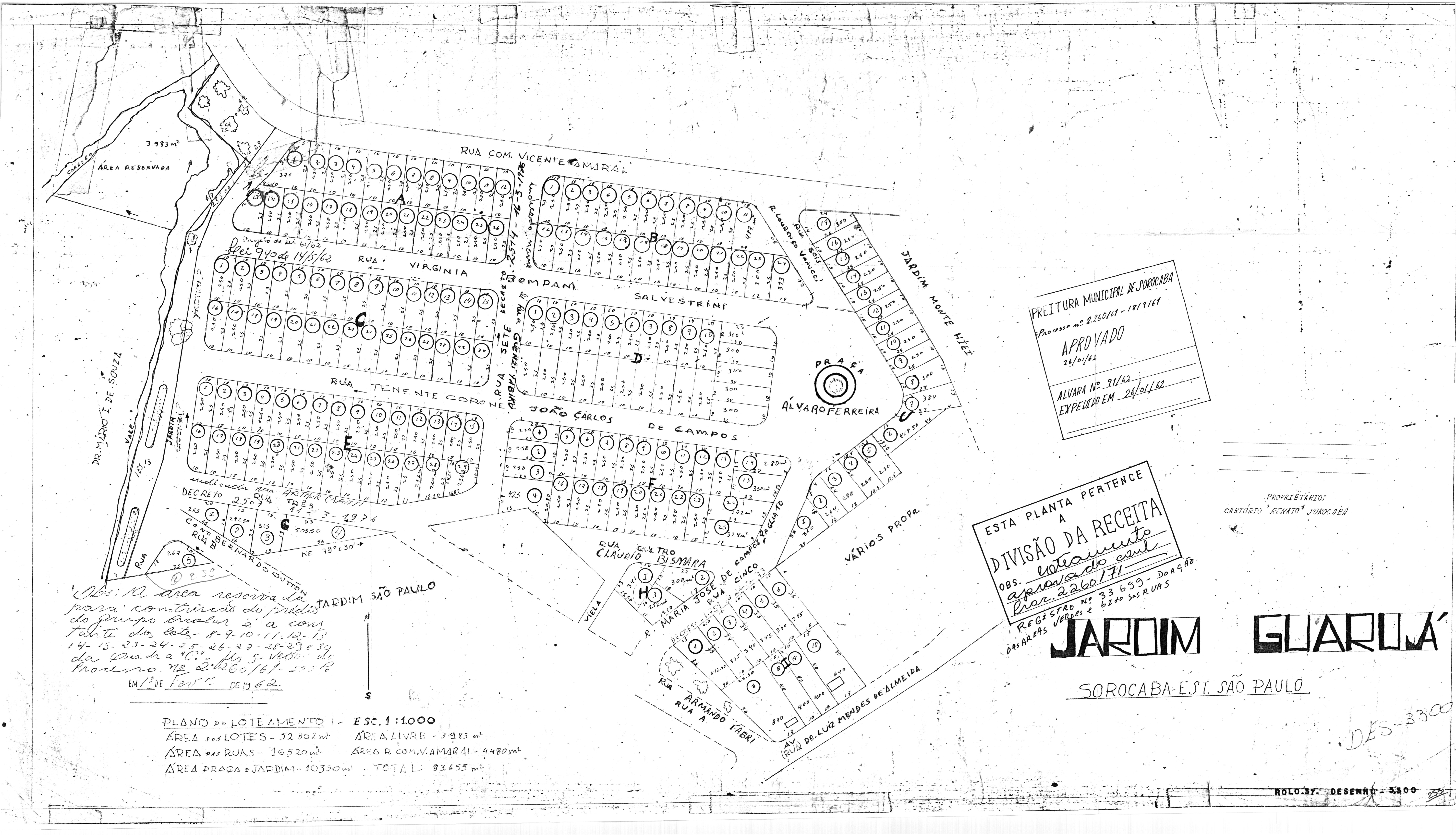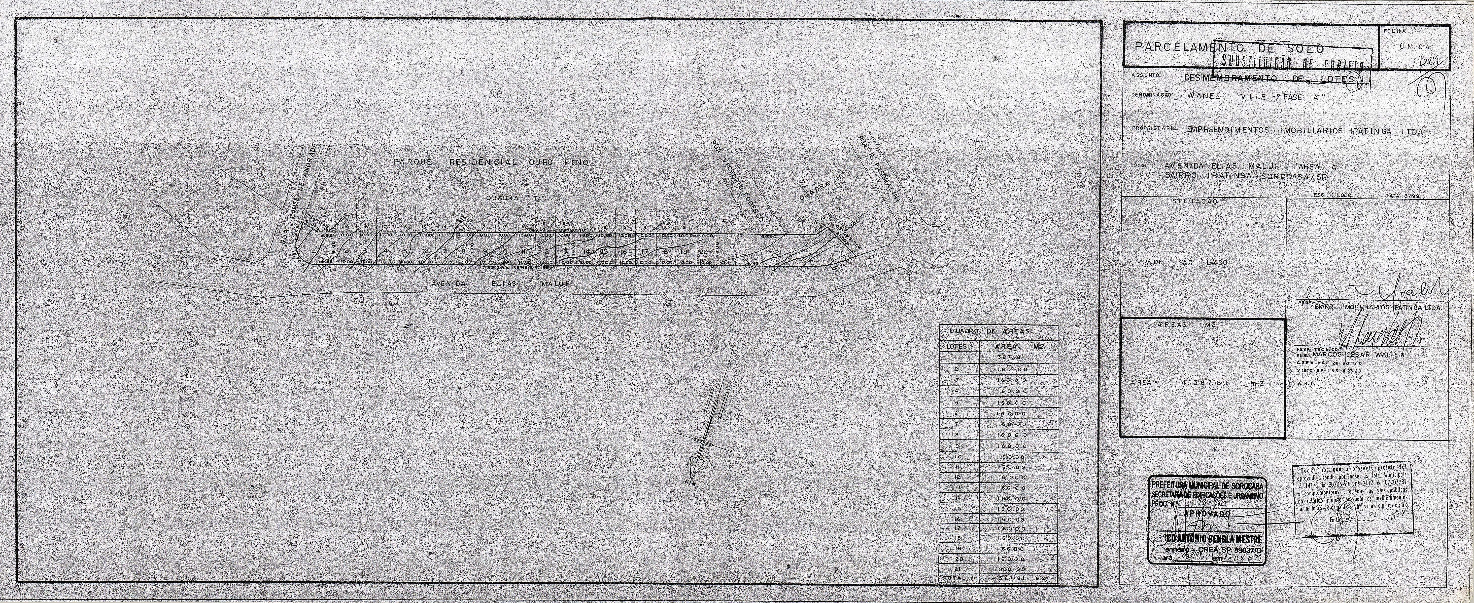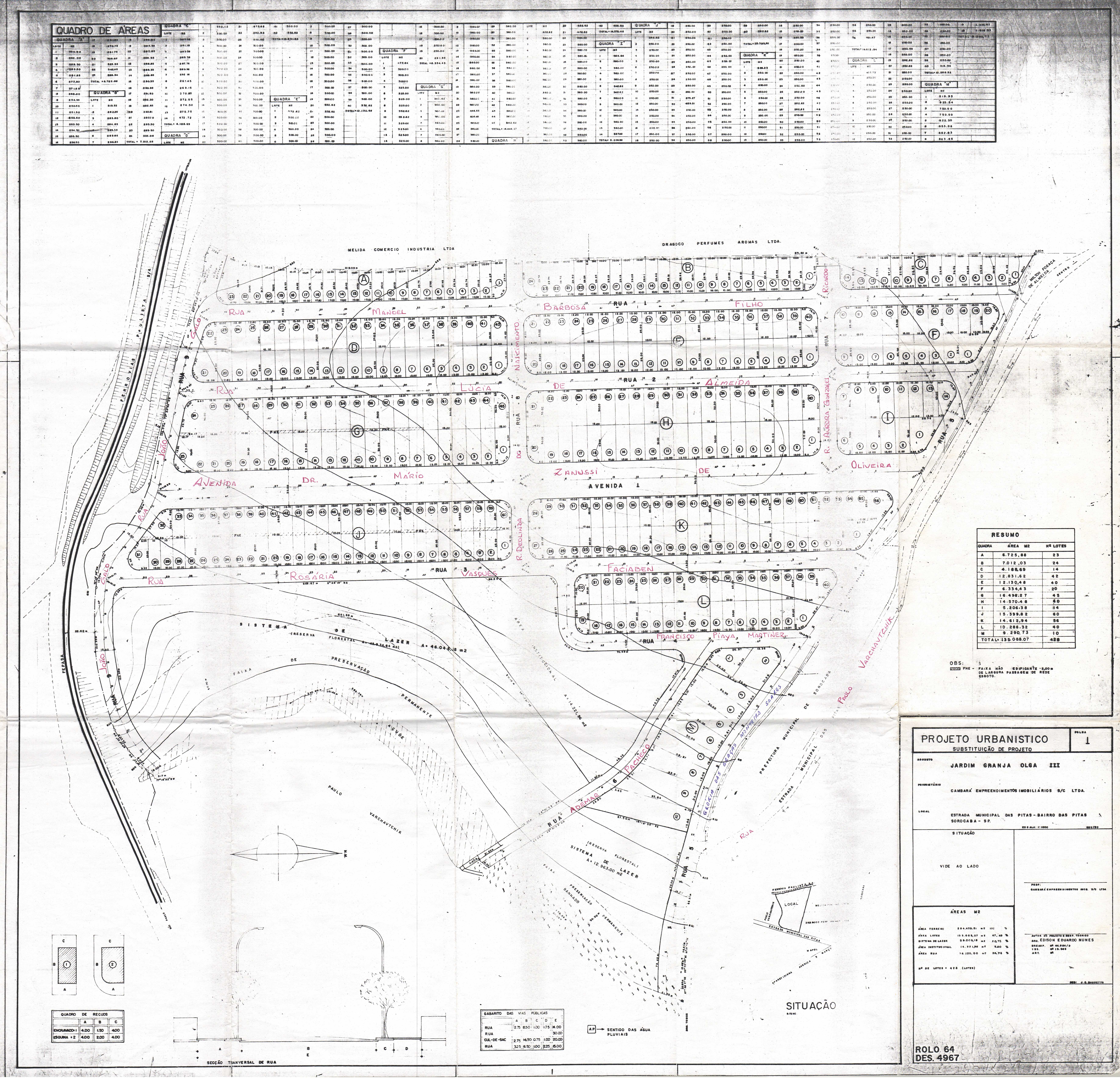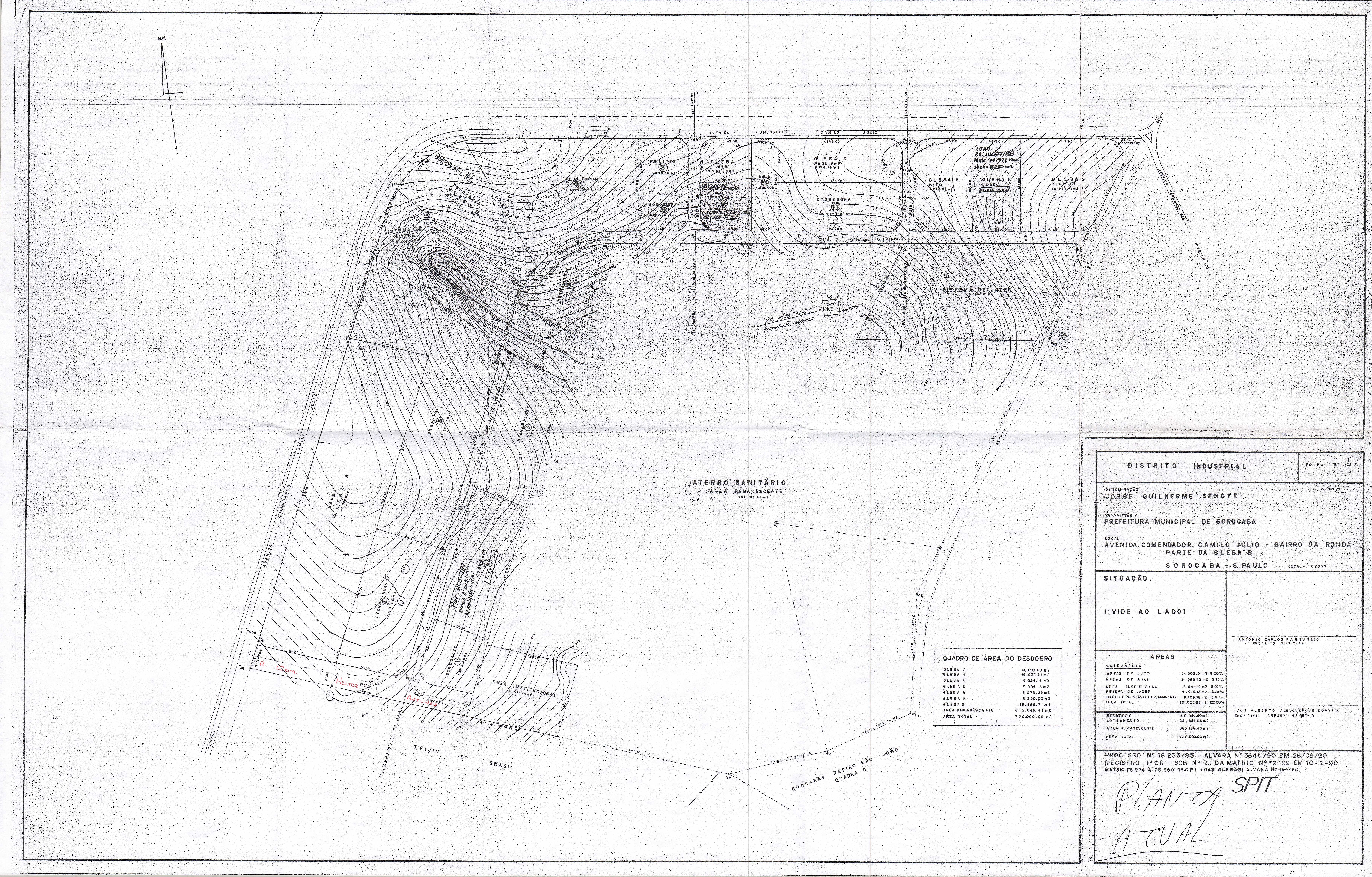 Veja abaixo o quadro de loteamentos e o mapa das áreas públicas de Sorocaba.