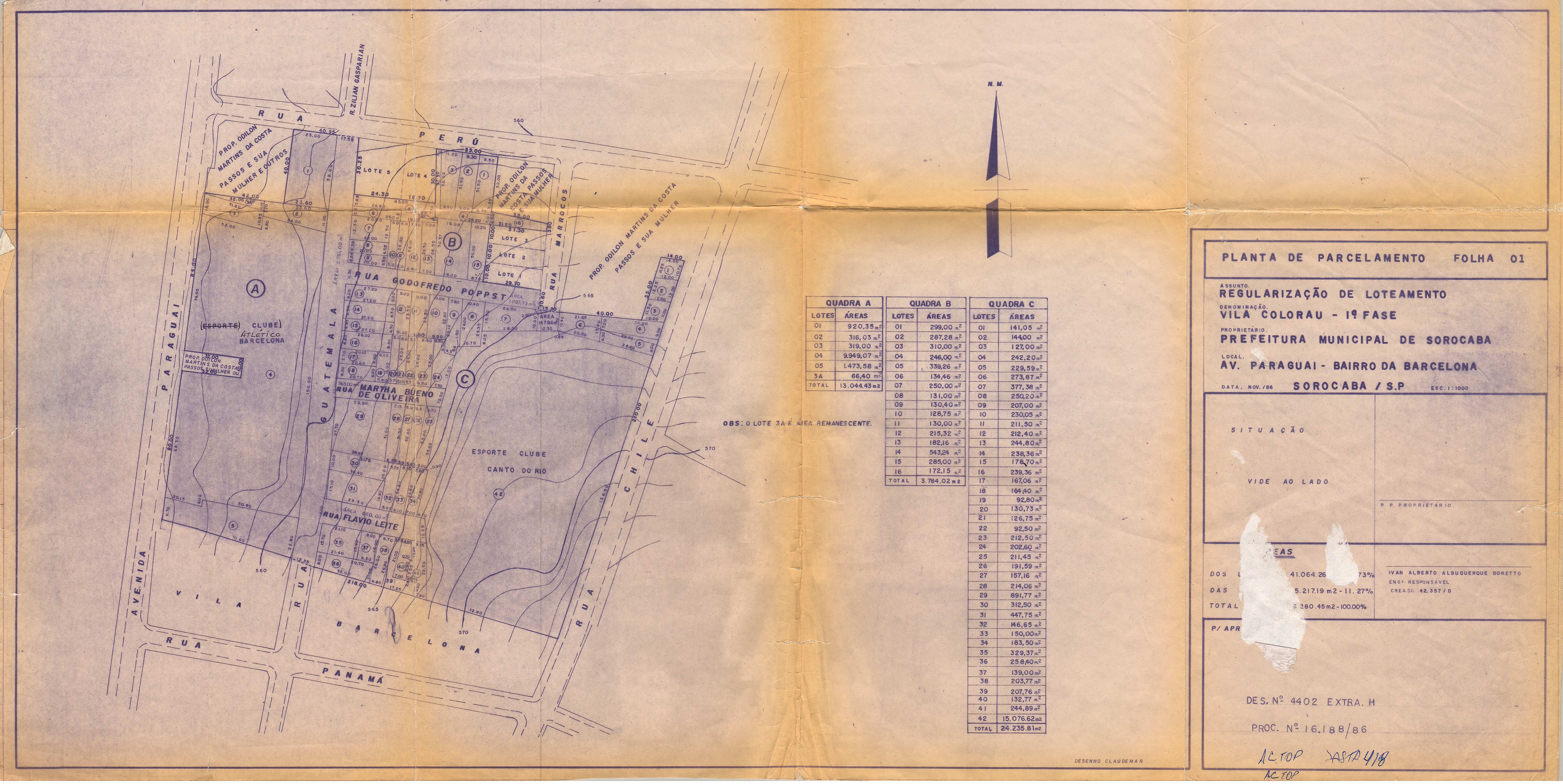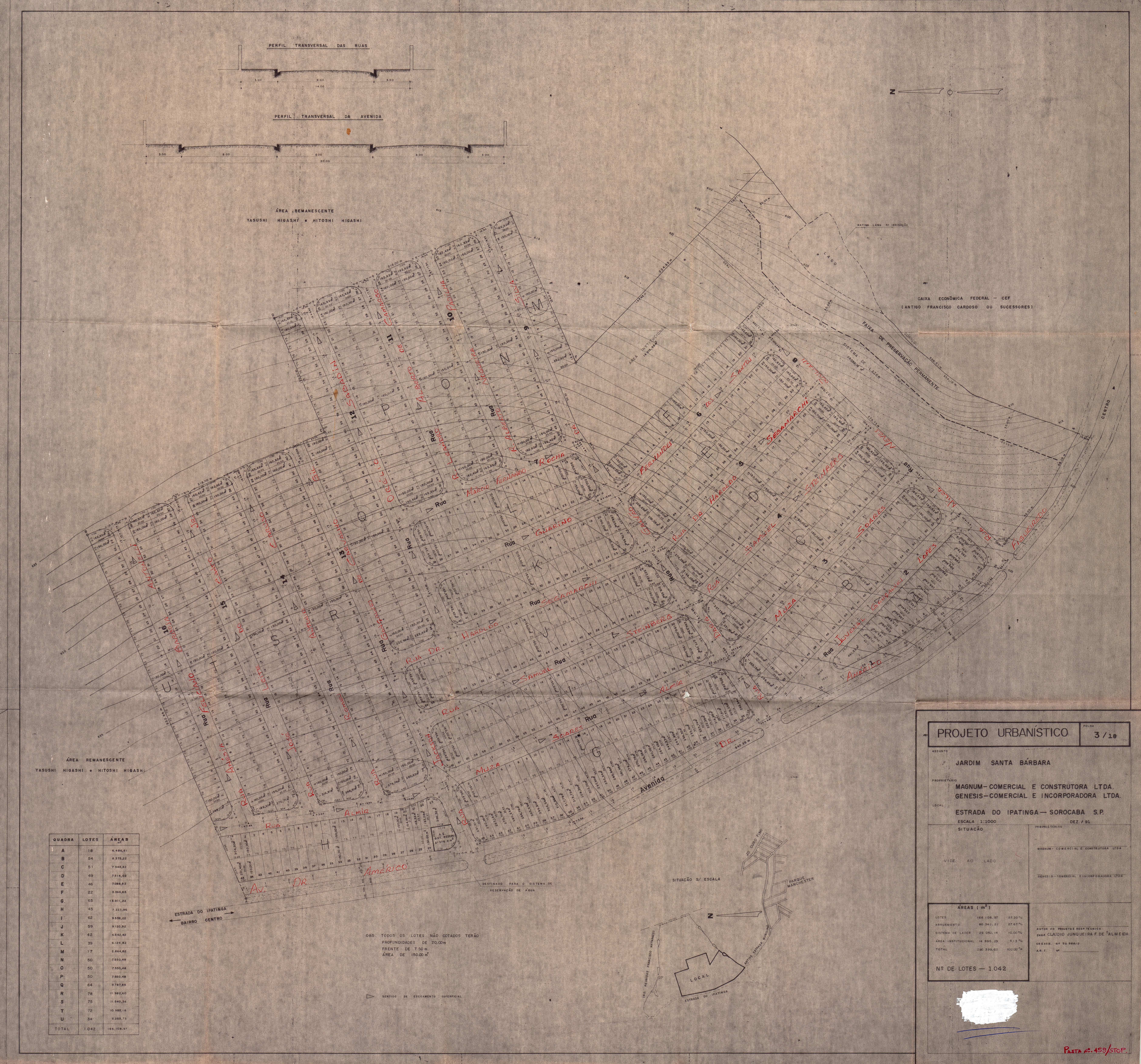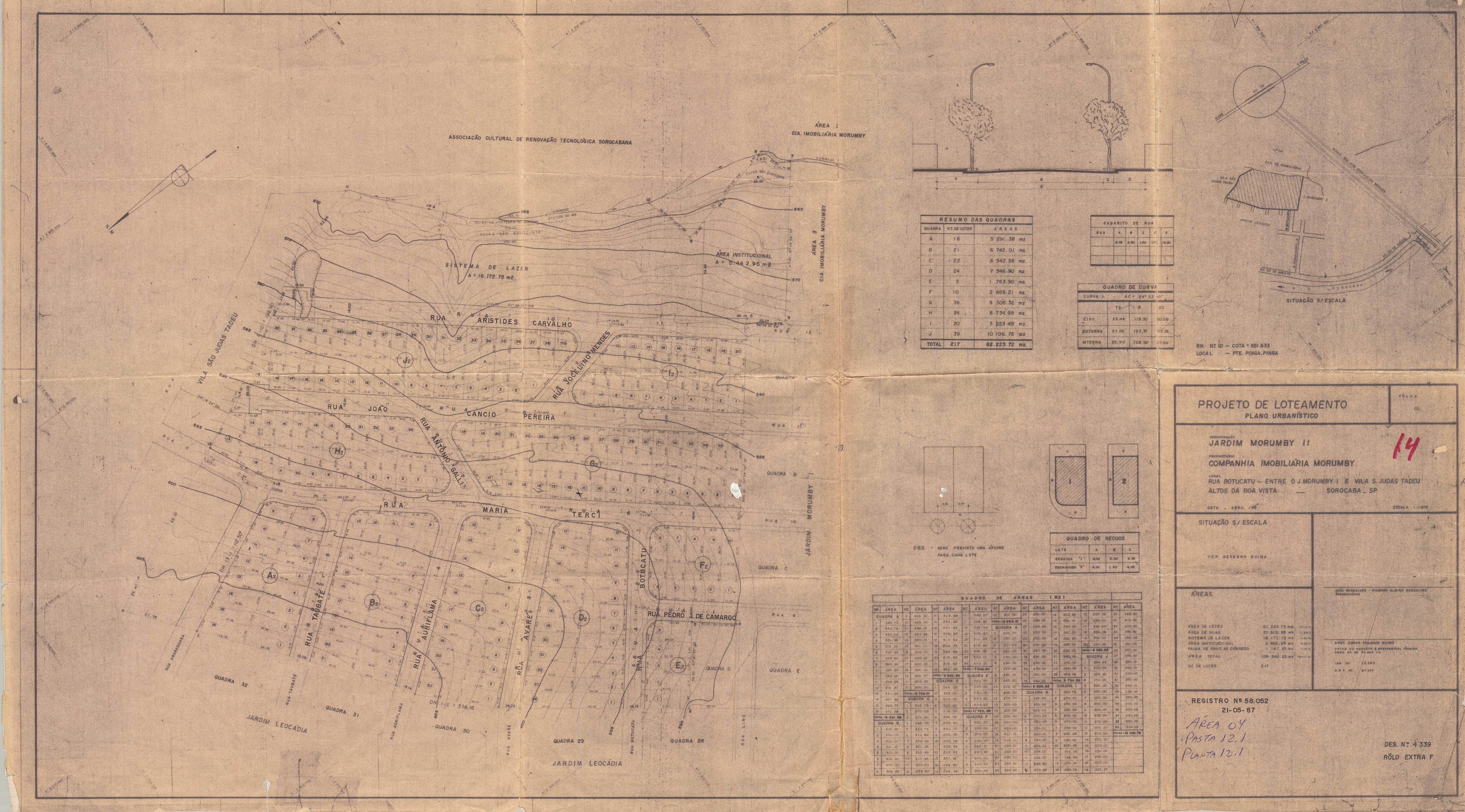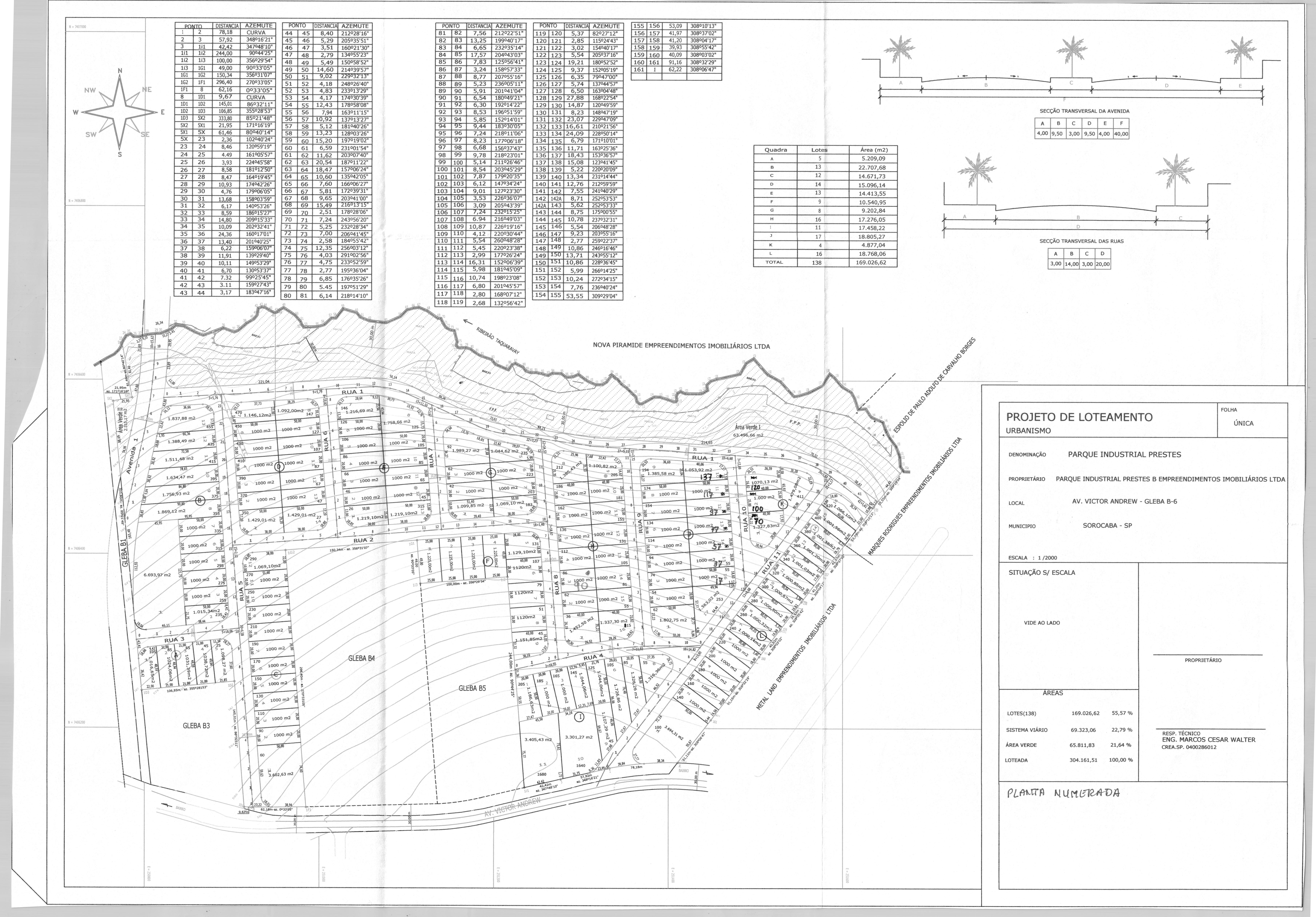 Veja abaixo o quadro de loteamentos e o mapa das áreas públicas de Sorocaba.