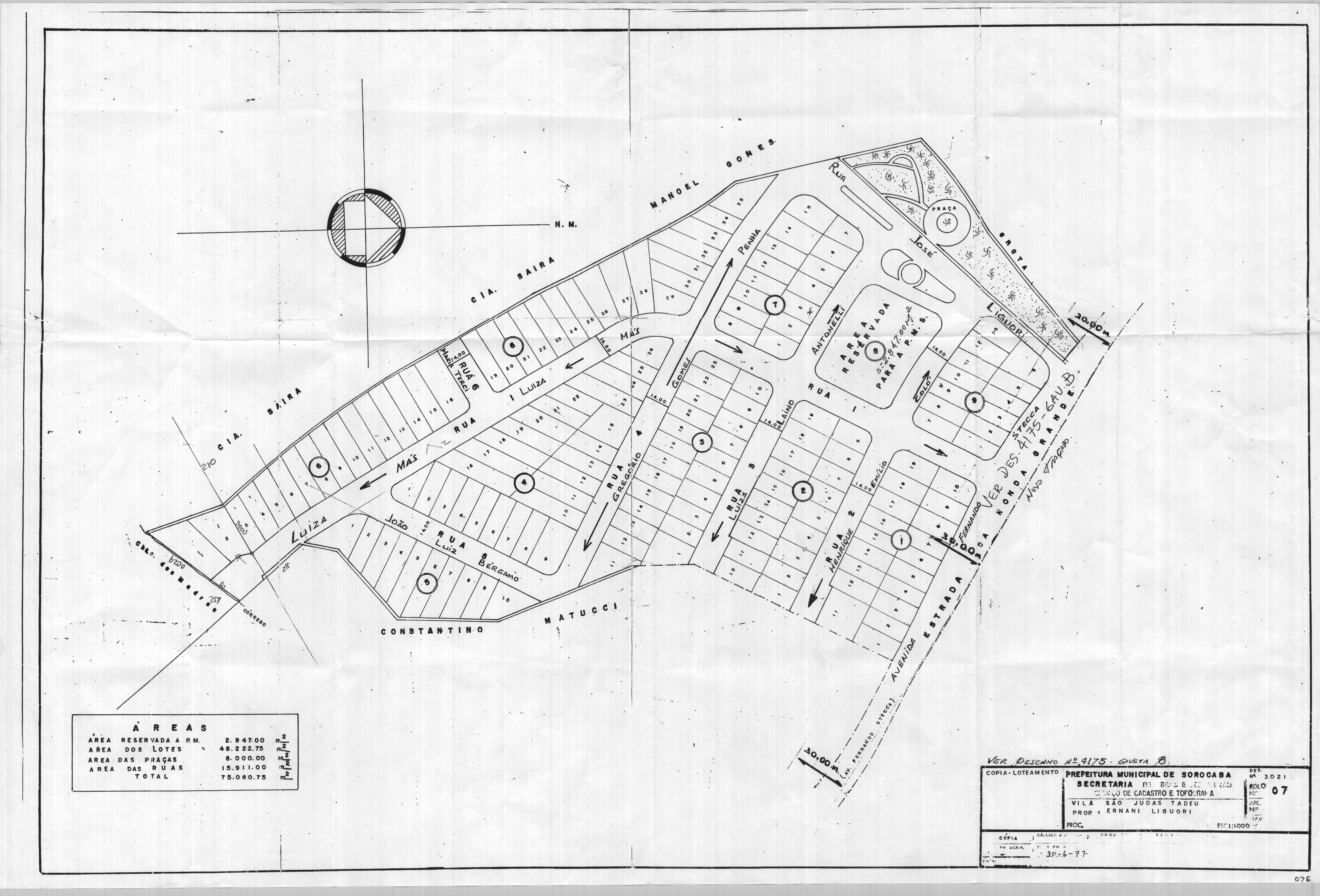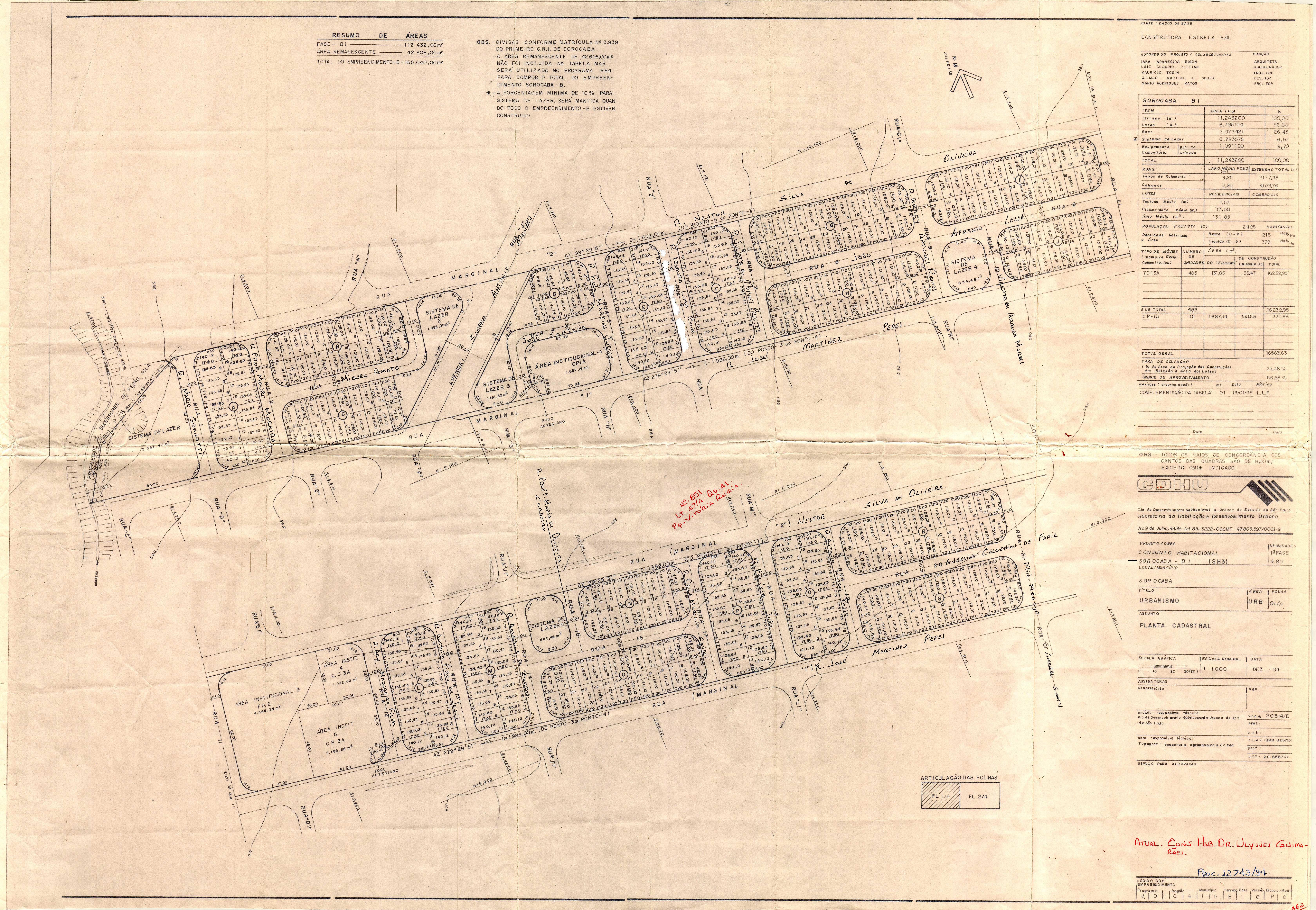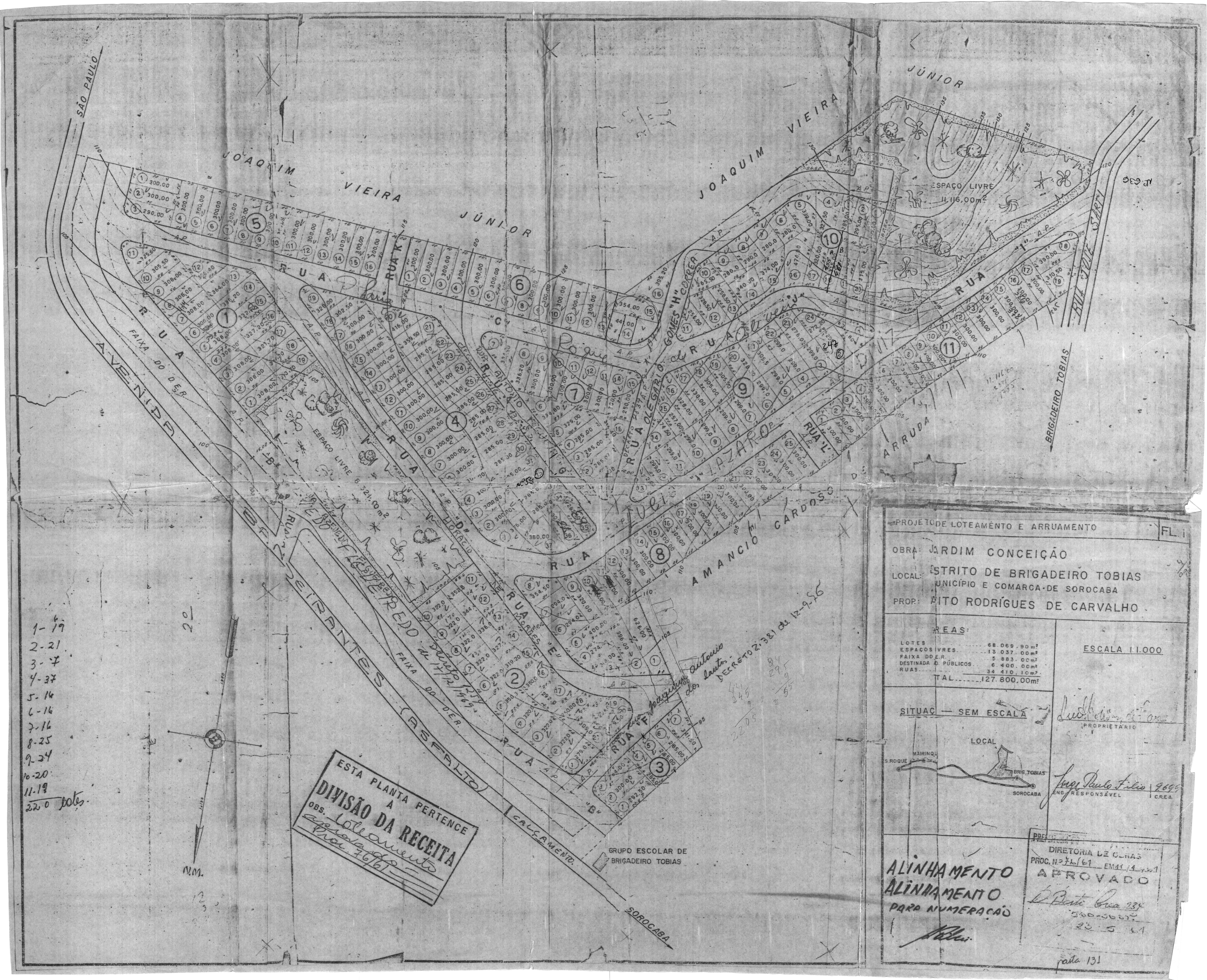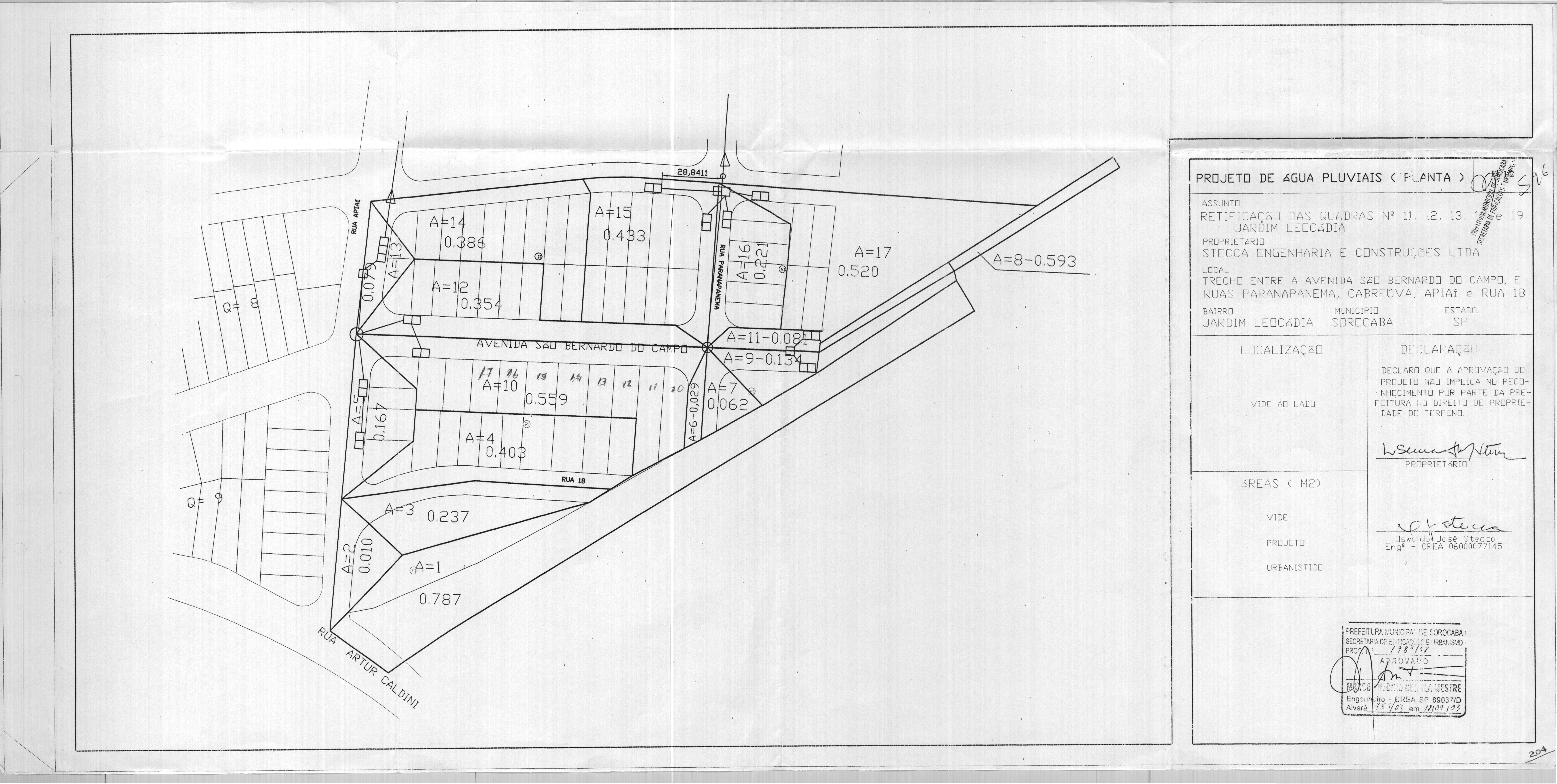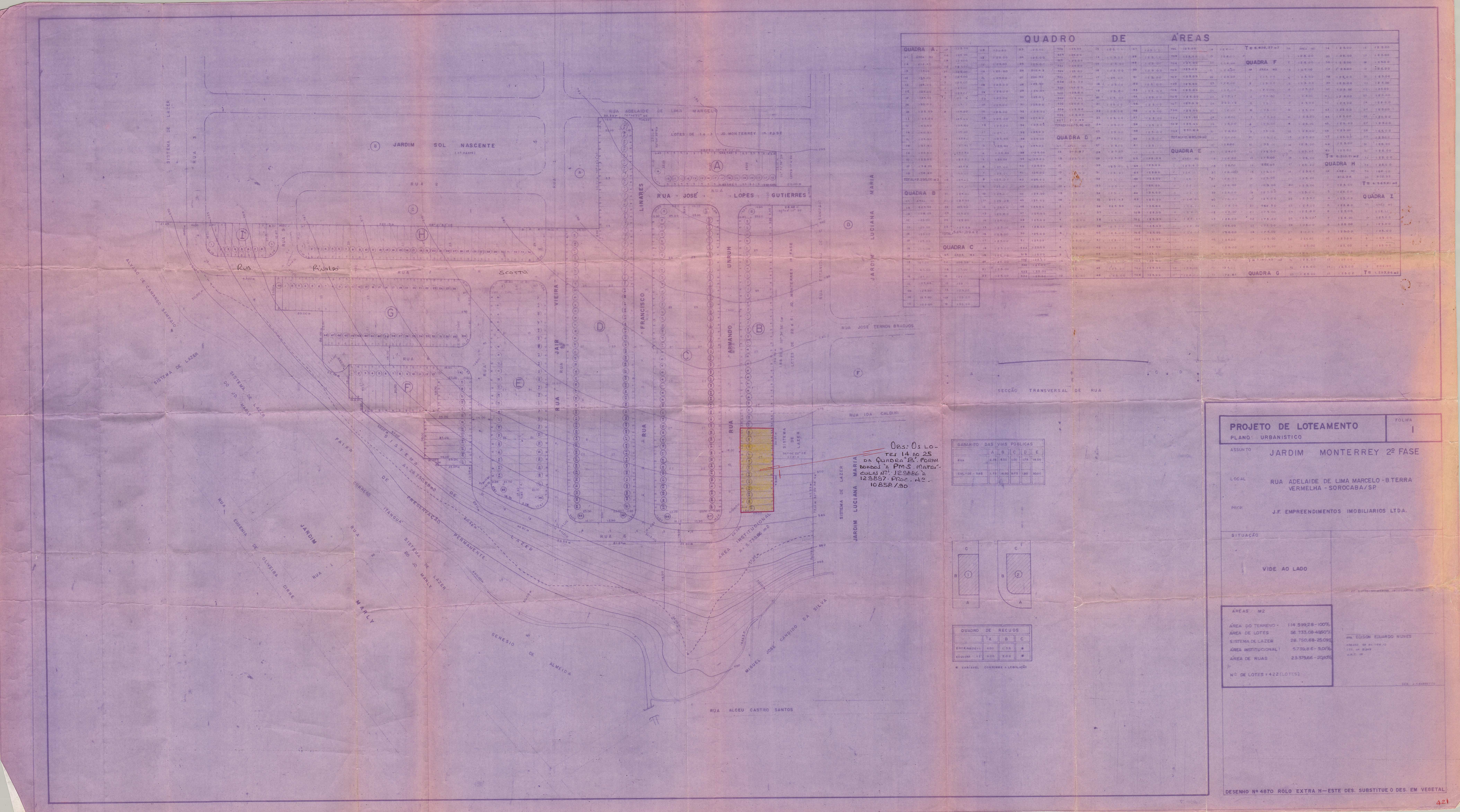 Veja abaixo o quadro de loteamentos e o mapa das áreas públicas de Sorocaba.