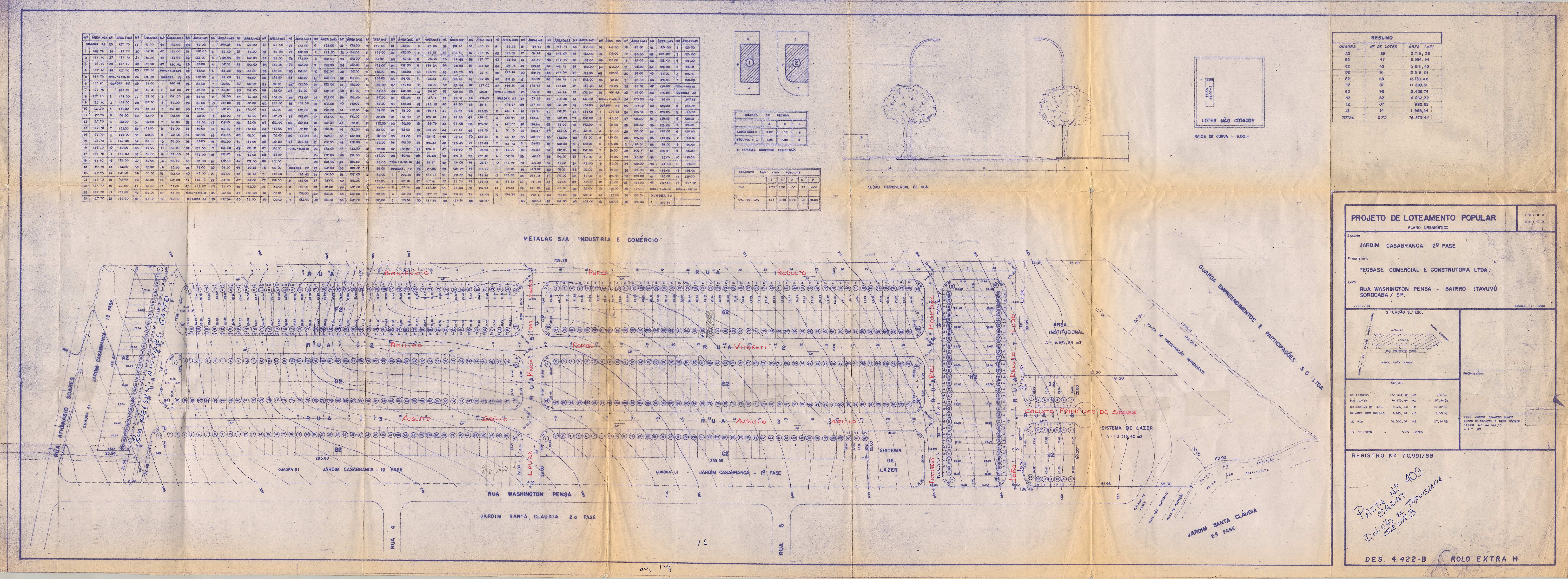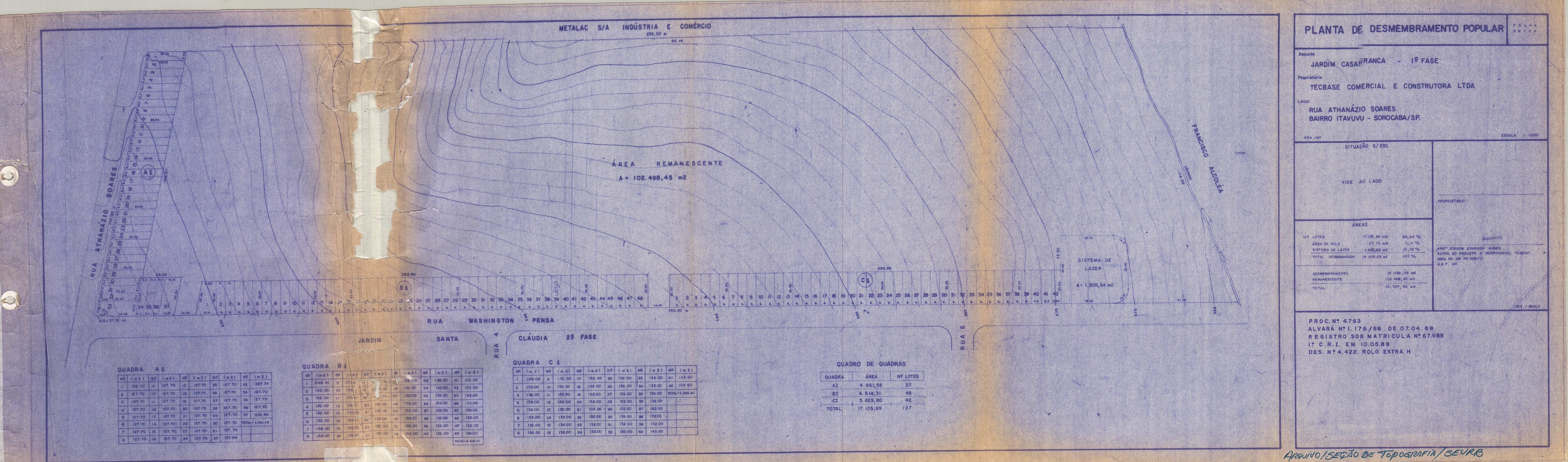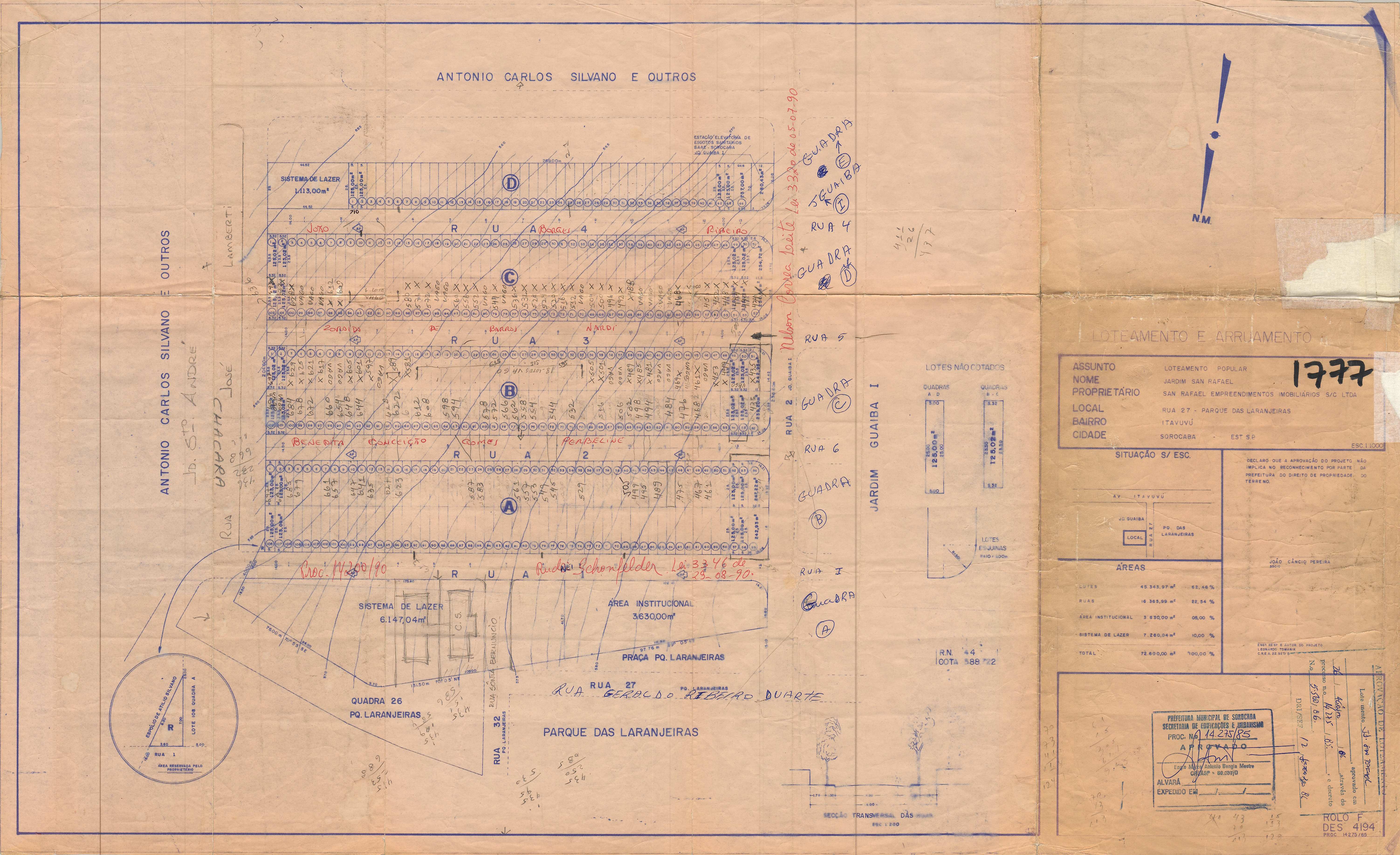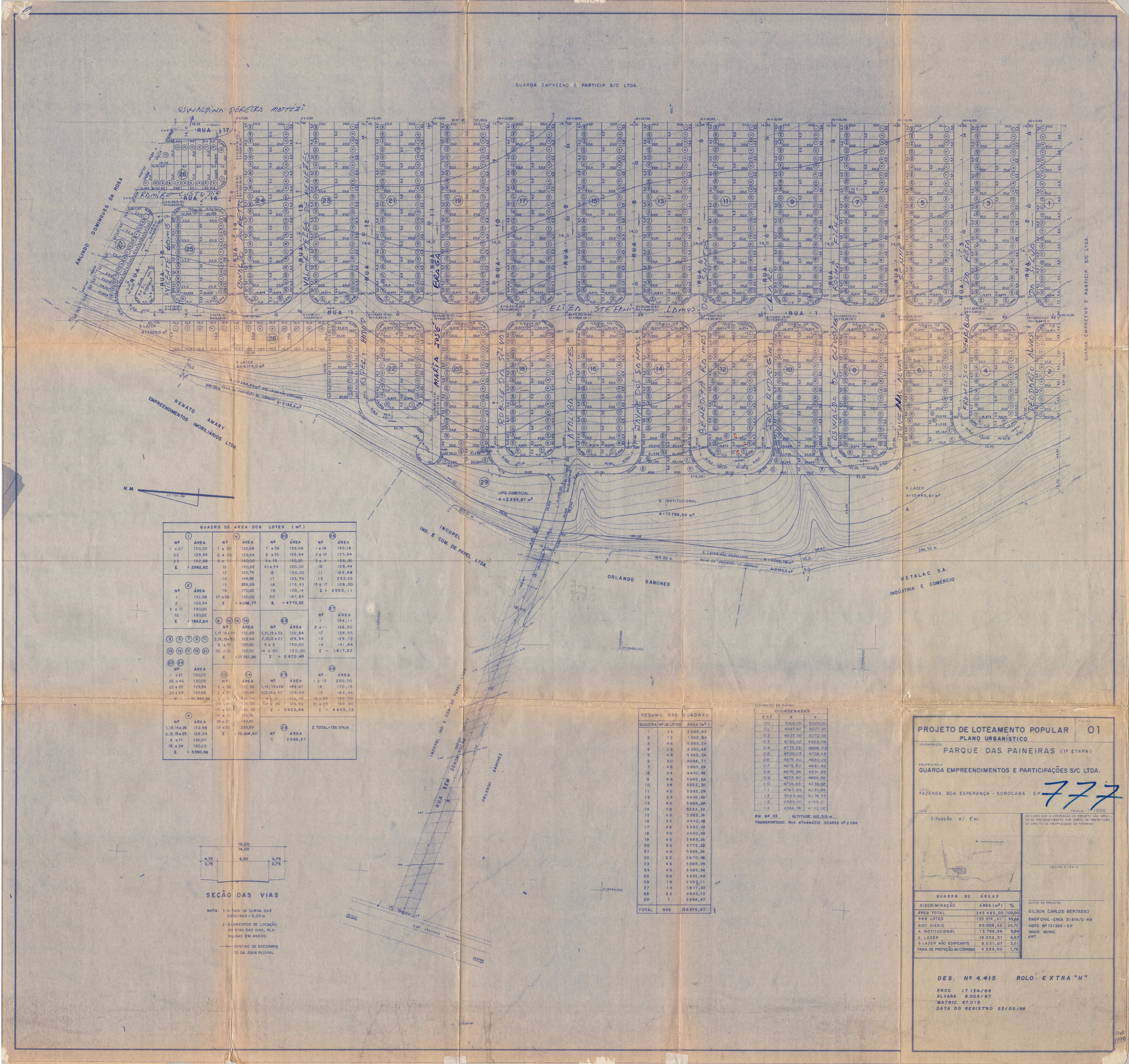 Veja abaixo o quadro de loteamentos e o mapa das áreas públicas de Sorocaba.
